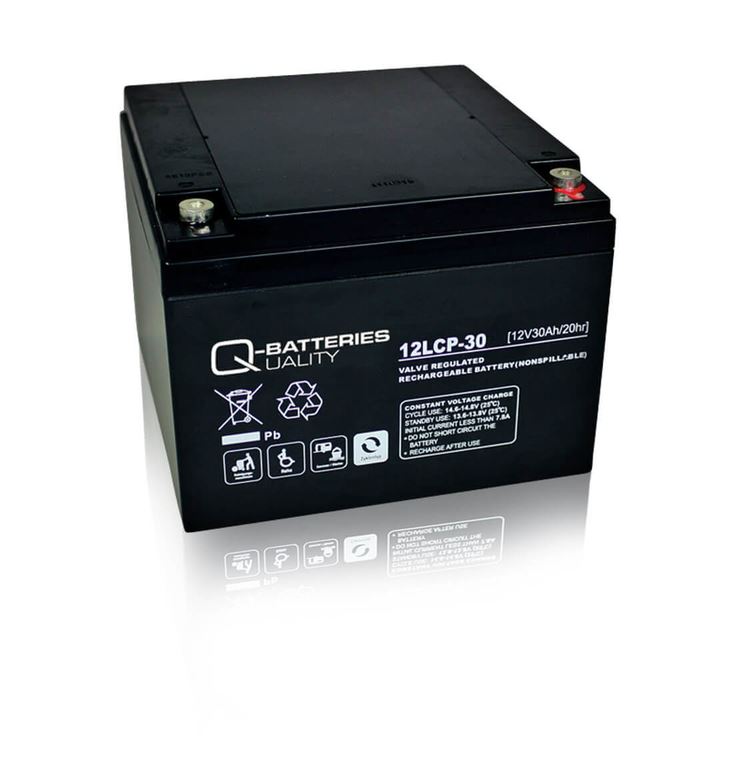 Die QU-Batterie 12LCP-30 wird mit ihrer AGM-Technologie (Absorbent Glass Mat-Technologie) in Objekten mit zyklischem Bedarf eingesetzt. Sie ist für den Einsatz in der Medizintechnik/ Reha-Technik (z.B. elektronische Rollstühle) sowie in Wohnwagen/ Wohnmobilen und Segel- und Elektroboote geeignet. Alternative Anwendungsgebiete sind in Solaranlagen und Windenergieanlagen zu finden.