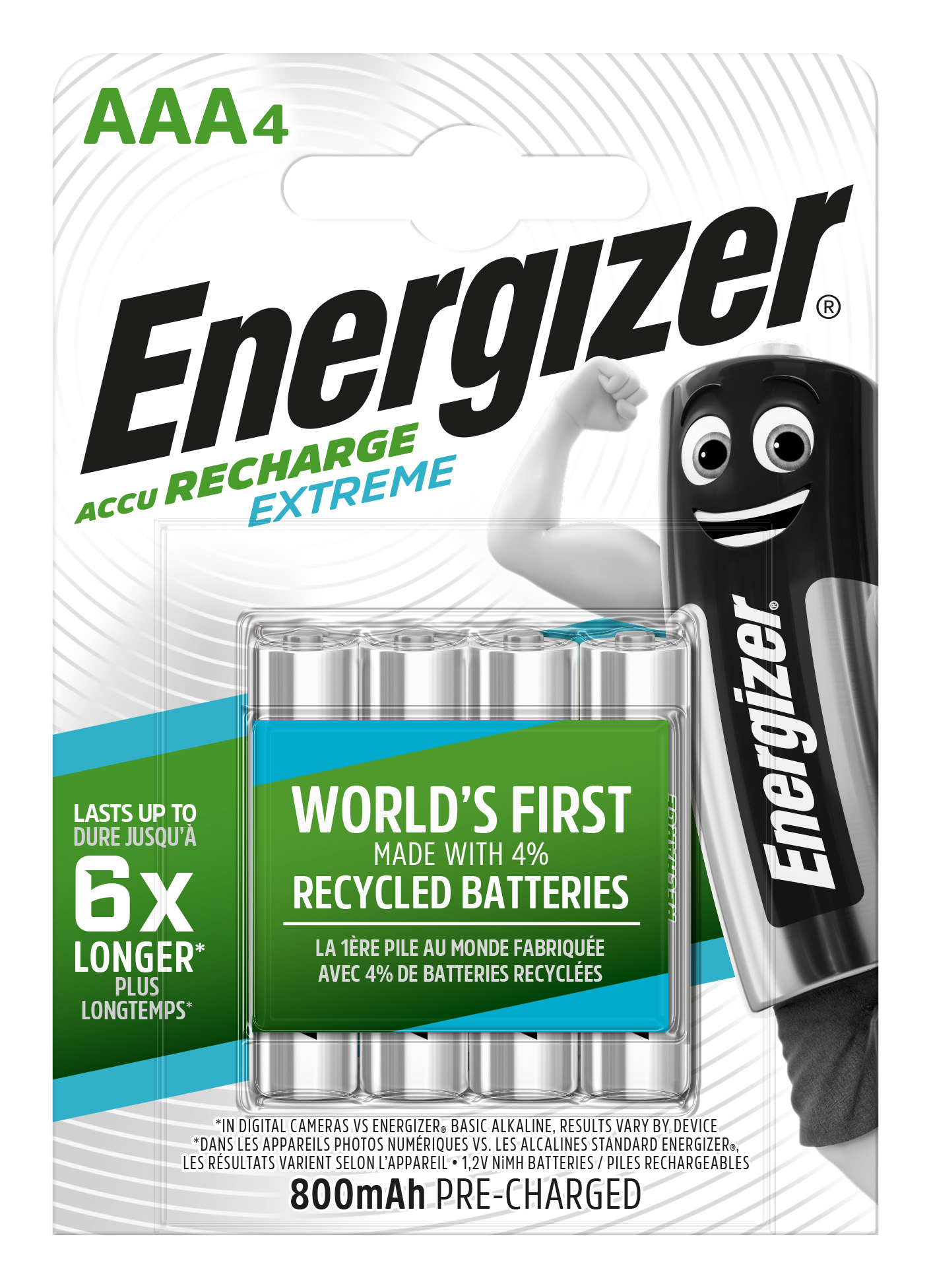 Energizer Akku Extreme HR03-AAA-Micro 800 maH 4er Blister2er Pack Micro, AAA Ready-To-Use Akkus mit einer Kapazität von 800mAh. Neueste Technologie vorgeladen & sofort einsatzbereit