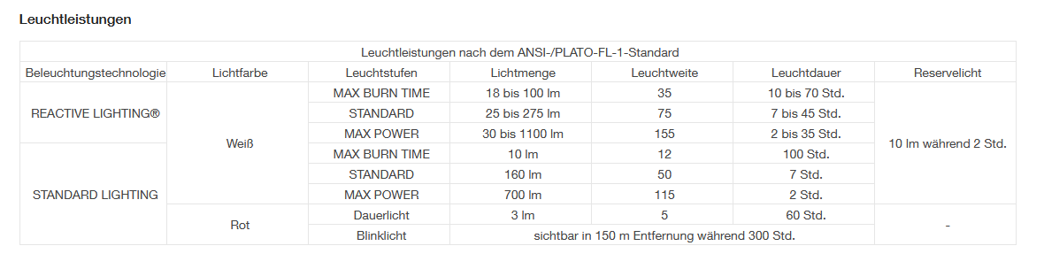 - Garantierte Mindestleuchtdauer von 7 Stunden im REACTIVE LIGHTING®-Modus (STANDARD-Leuchtstufe) für lange Touren.
