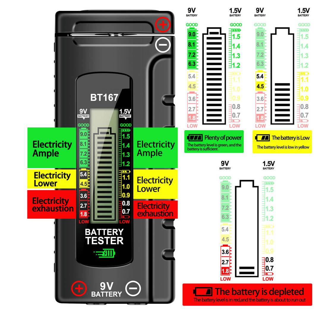 BT167 Digitaler Batterietester für Haushaltsbatterien